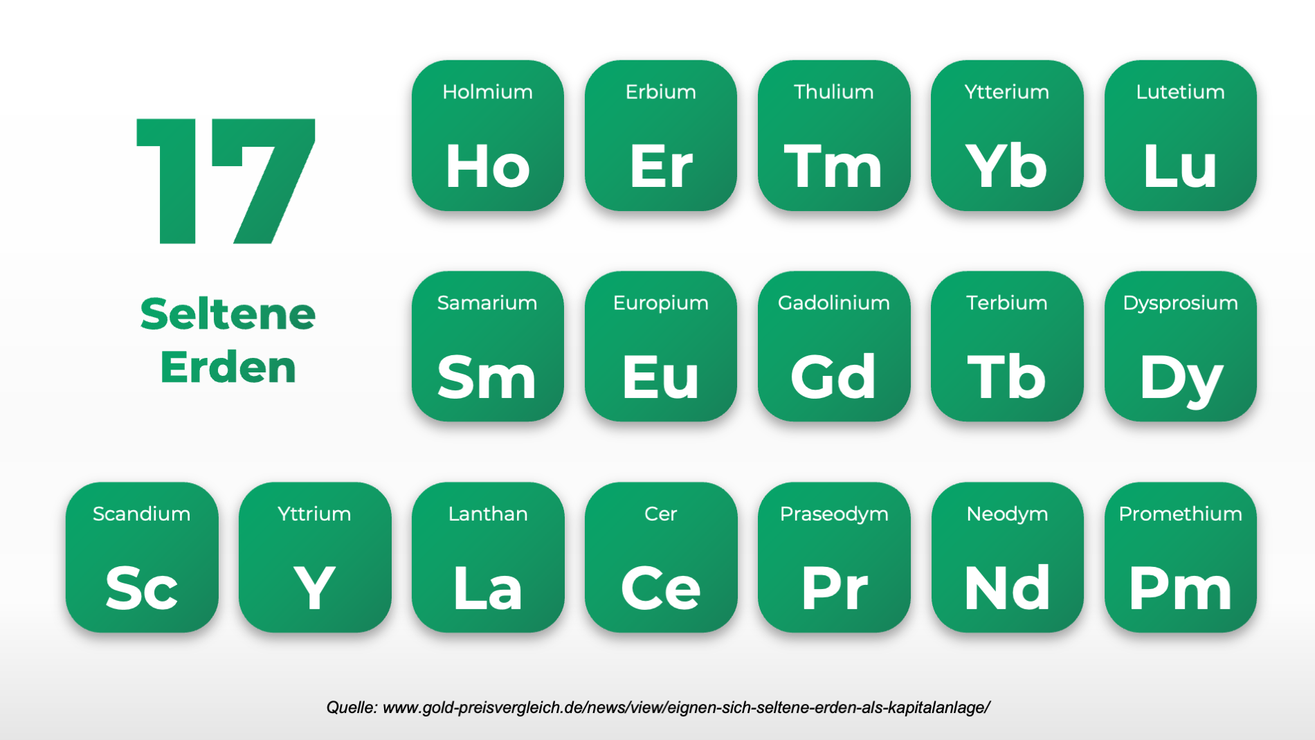 Für die Energiewende sind insbesondere Elemente wie Neodym, Dysprosium und Terbium von Bedeutung. Sie werden unter anderem für leistungsstarke Permanentmagnete benötigt, die in Windkraftgeneratoren und Elektromotoren zum Einsatz kommen. Diese Magnete ermöglichen hohe Wirkungsgrade und kompakte Bauweisen, sind jedoch nur schwer substituierbar. Die besondere Kombination aus physikalischen Eigenschaften, hoher Nachfrage und begrenzter Verarbeitungskapazität macht Seltene Erden zu einer besonders sensiblen Ressourcengruppe.