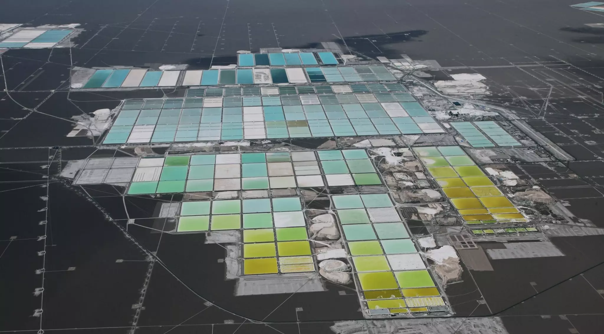 Dort wird Lithium überwiegend aus salzhaltigem Grundwasser gewonnen, insbesondere in der Atacama-Wüste. Das Verfahren basiert auf der Förderung lithiumhaltiger Sole, die in großflächigen Solebecken über Monate hinweg verdunstet. Durch diesen Prozess steigt die Konzentration der gelösten Salze, sodass Lithiumverbindungen schrittweise extrahiert werden können. Die unterschiedlichen Farben der Becken spiegeln dabei verschiedene Konzentrations- und Prozessstufen wider.